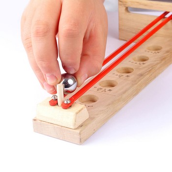 در این بازی شیب میله ها به سمت پایین است و هنگامی که گوی فلزی روی میله ها قرار می گیرد به سمت پایین قل می خورد. با باز کردن تدریجی میله ها و جابجایی مرکز ثقل گوی نسبت به نقاط تکیه گاه، گرانیگاه گوی تغییر کرده و نیرویی برای هدایت گوی به سمت بالا شکل میگیرد و به این ترتیب گوی به سمت بالا حرکت می کند! اگر گلوله داخل آخرین سوراخ بیفتد بیشترین امتیاز را خواهد داشت.